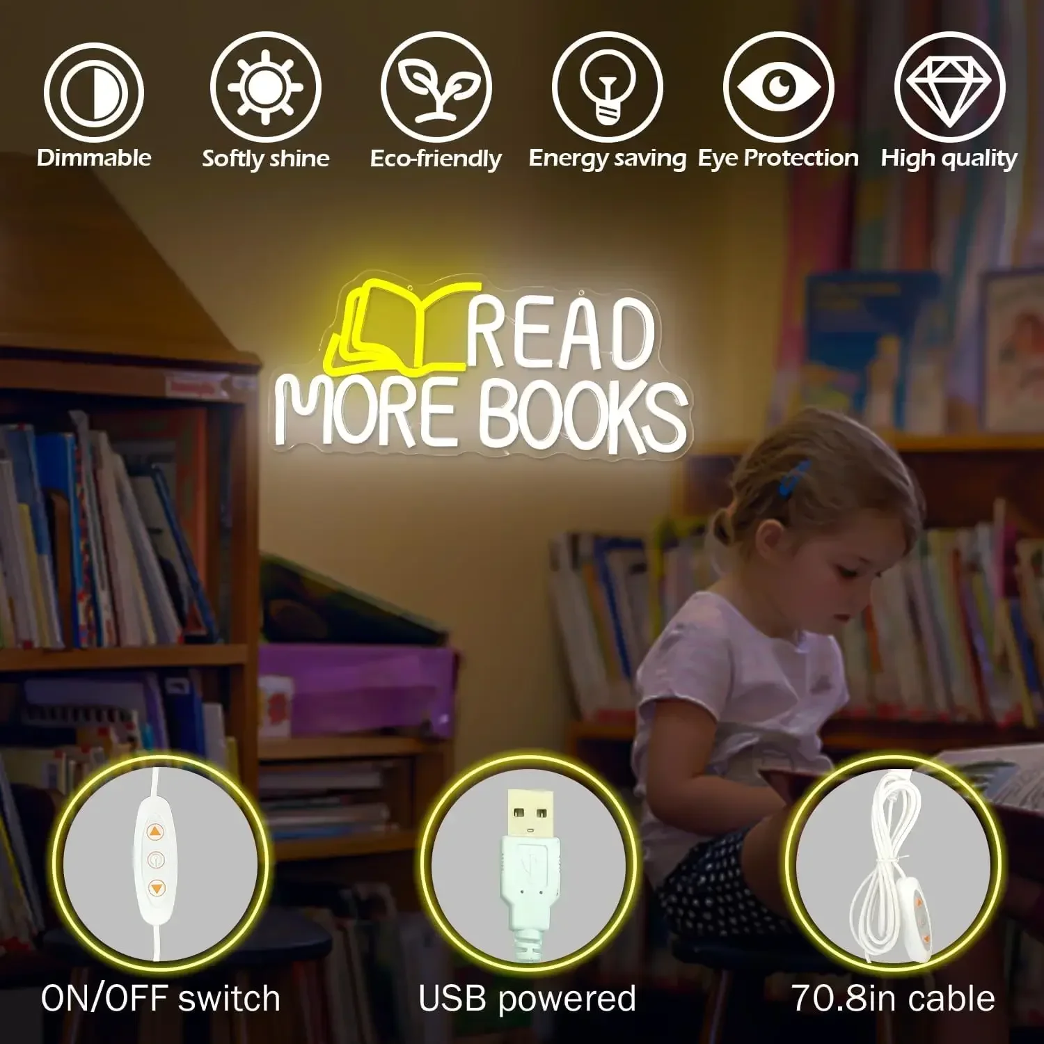 Read More Books Neon Sign LED Neon Light for Classroom Bedroom Bookstore Reading Room Library Museum Study Room Decor